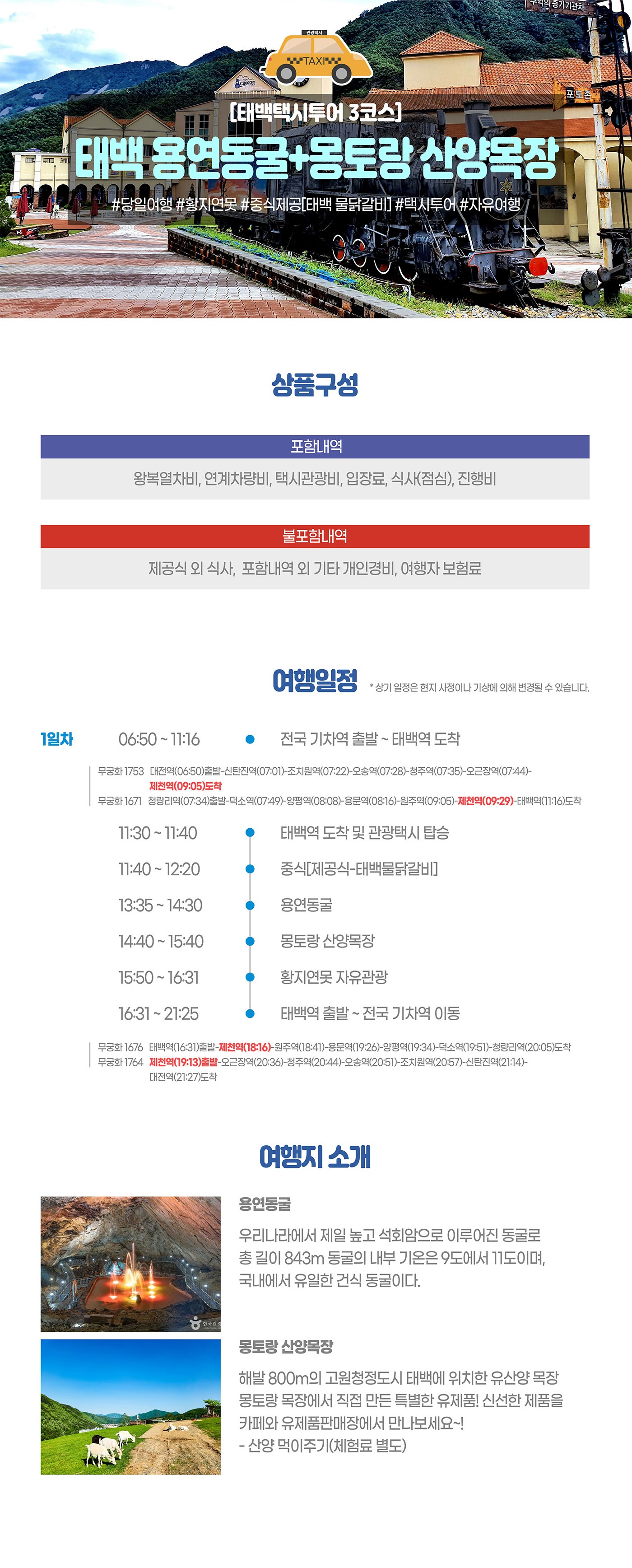 [태백택시투어 3코스]용연동굴&몽토랑 산양목장(당일)