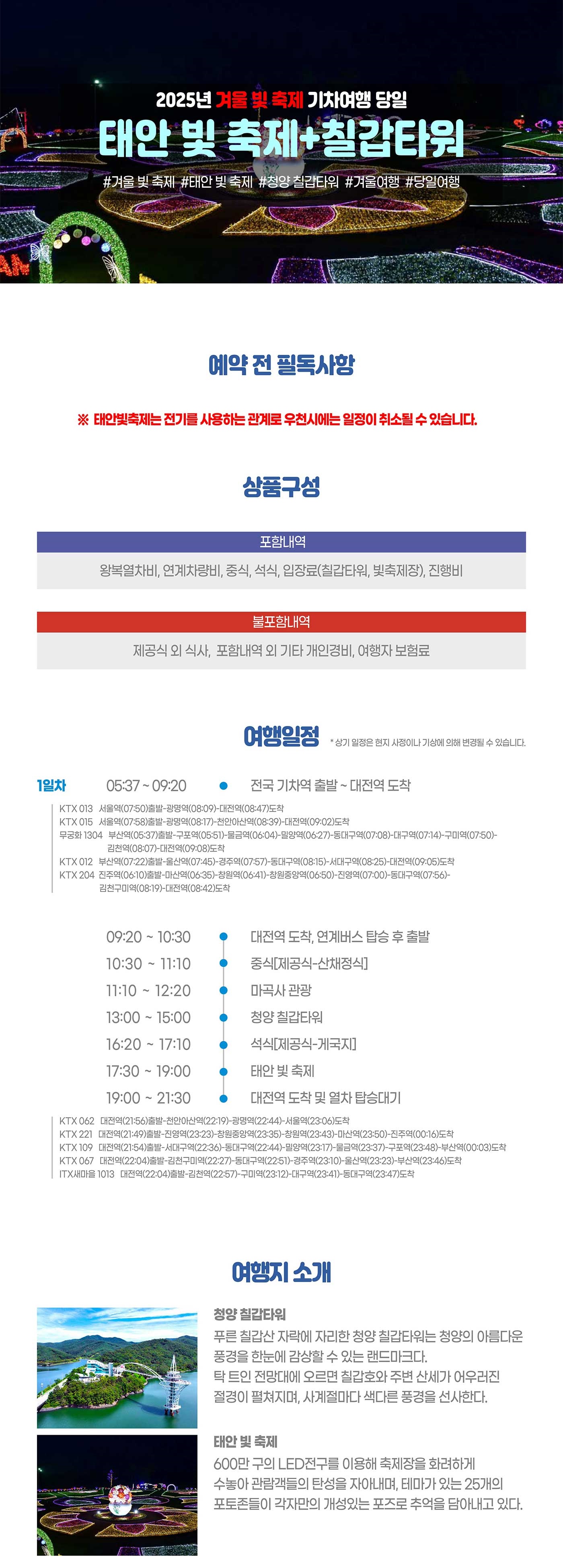 | 여행코스 | 대전역-마곡사-칠갑타워-태안빛축제-대전역 |