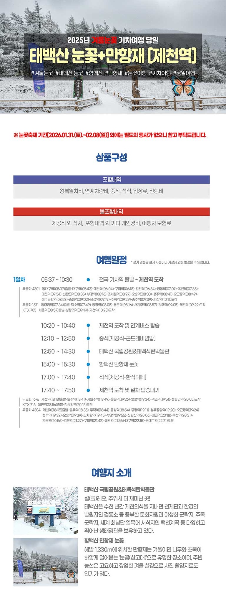 | 여행코스 | 제천역-태백산 국립공원-함백산 만항재-제천역 |