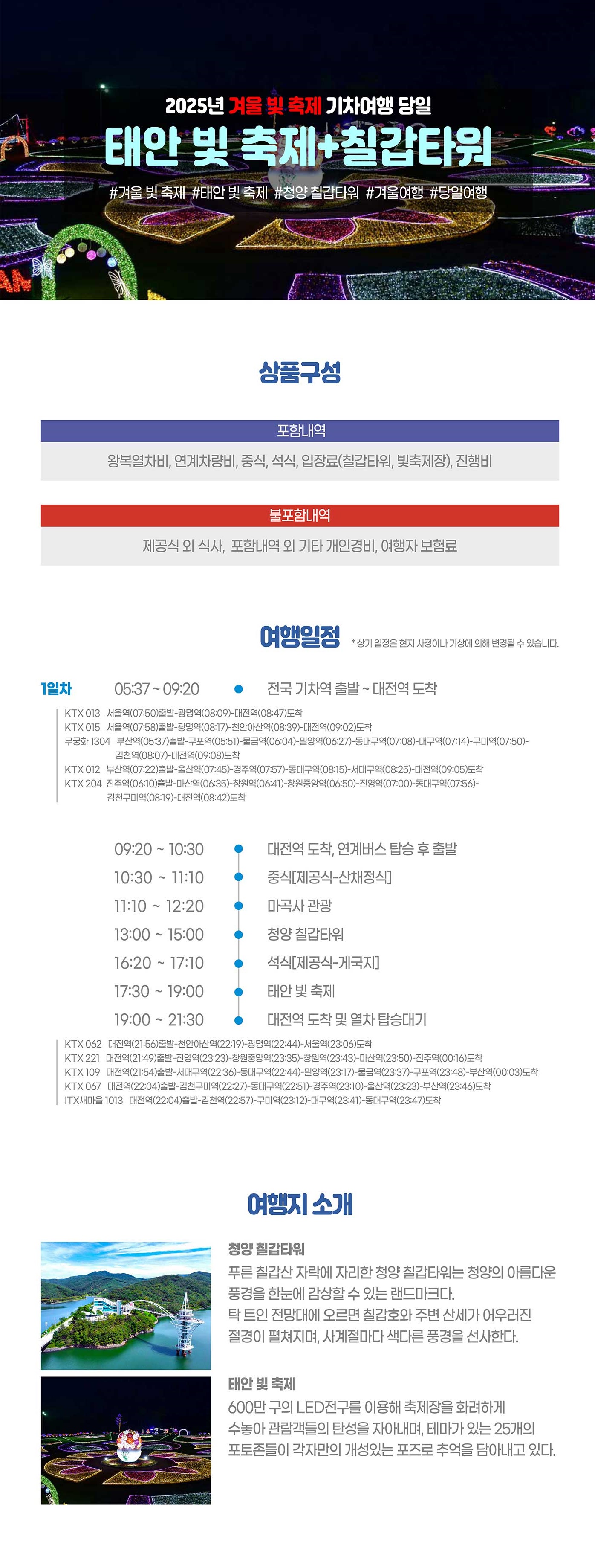 | 여행코스 | 대전역-마곡사-칠갑타워-태안빛축제-대전역 |