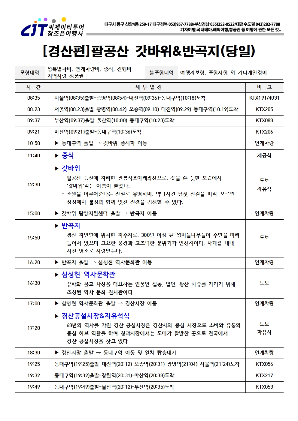 여행코스 동대구역-중식-갓바위-반곡지-삼성현 역사문화관-경산공설시장
