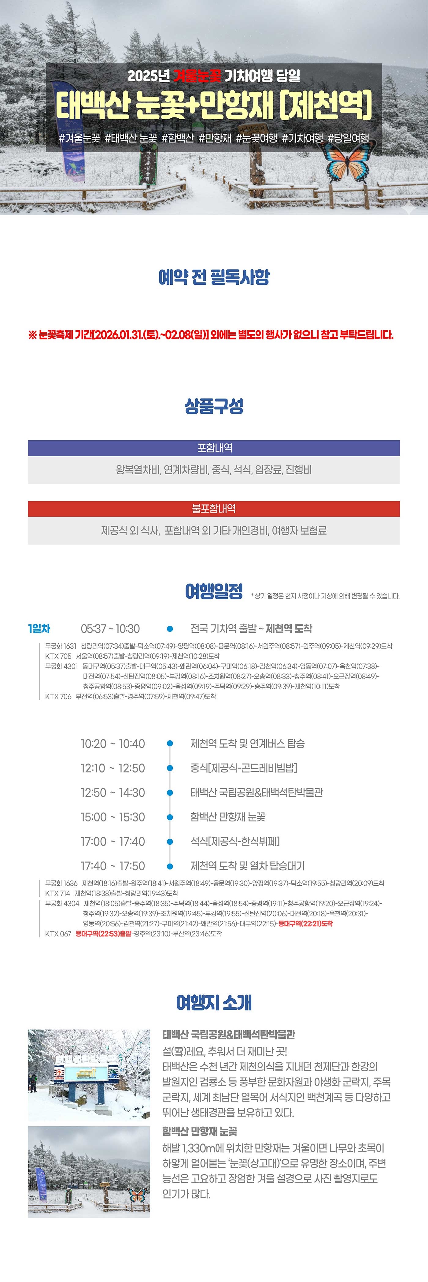 | 여행코스 | 제천역-태백산 국립공원-함백산 만항재-제천역 |