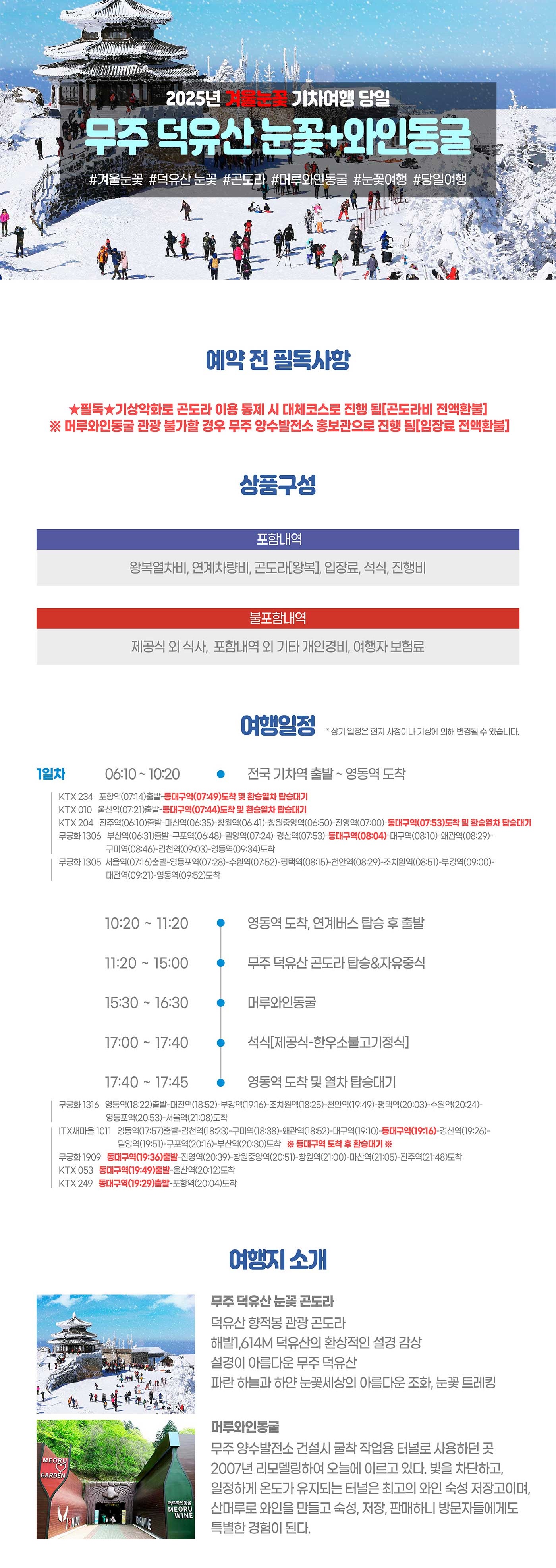 | 여행코스 | 영동역-무주 덕유산 곤도라-머루와인동굴-영동역 |